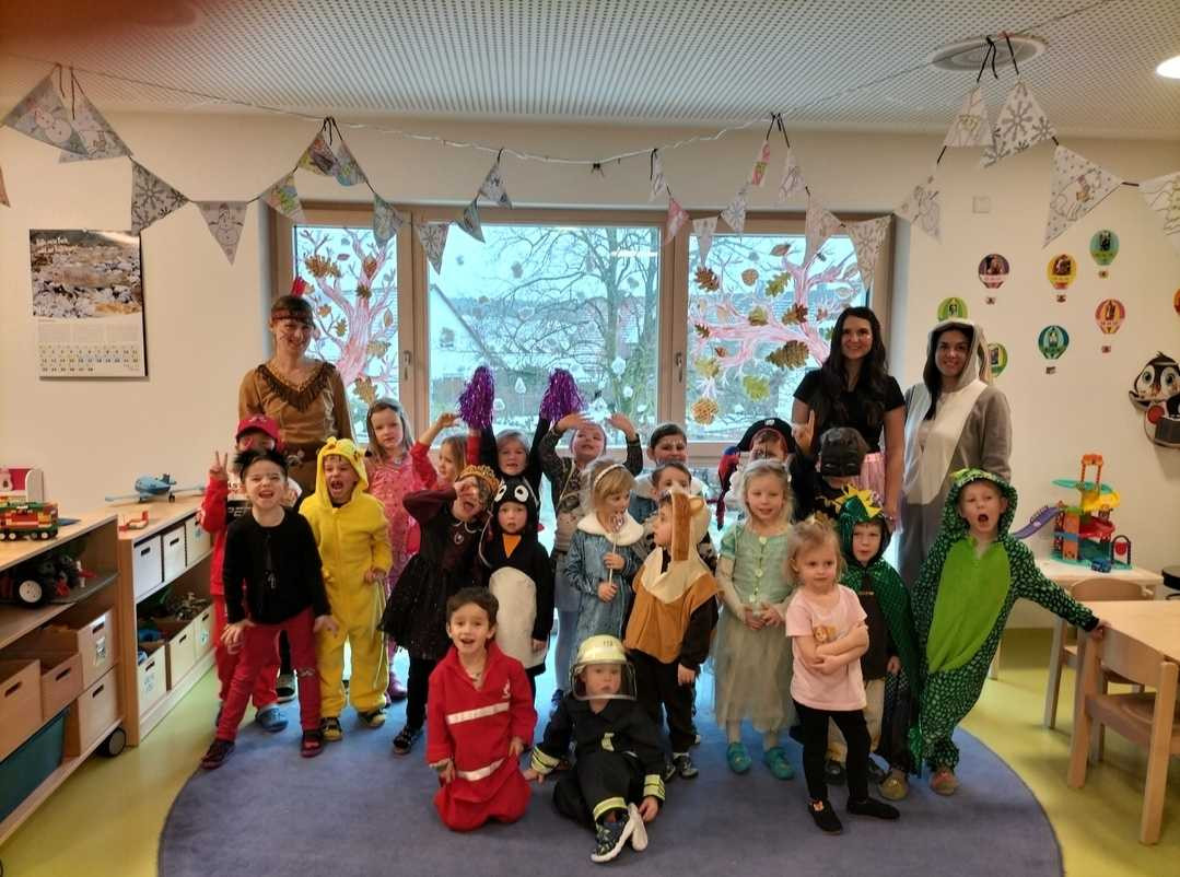 Zum Abschluss der Faschingszeit durften am Faschingsdienstag alle Krippen- und Kindergartenkinder nochmal verkleidet kommen. Bei einer fröhlichen Faschingsparty wurde viel gesungen, getanzt und gelacht. Außerdem wurde ein buntes, leckeres Buffet genascht. Die tollen Kostüme wurden bei einer Modenschau bestaunt und in einer Polonäse durch das ganze Haus geführt. Alle hatten riesengroßen Spaß. Helau!
